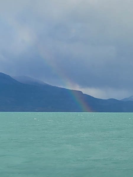 Wir sitzen im Trockenen und schippern gemütlich mit einem Boot durchs Wasser, das den Lago Argentino füllt. Der Kapitän navigiert durch die engste Stelle des Sees, die Boca del Diablo (Teufelsmund), und ganz nah am felsigen Ufer entlang. Wir recken die Köpfe, um bis ganz nach oben zu schauen, wo ein Condor die Steilwand abfliegt. Er muss nur seine gigantischen Schwingen spreizen, schon gleitet er elegant durch die Lüfte. Zum Glück sitzen wir in der ersten Reihe und überblicken durch die großen Panoramafenster den ganzen See und das Vordeck. Uns entgeht nichts.